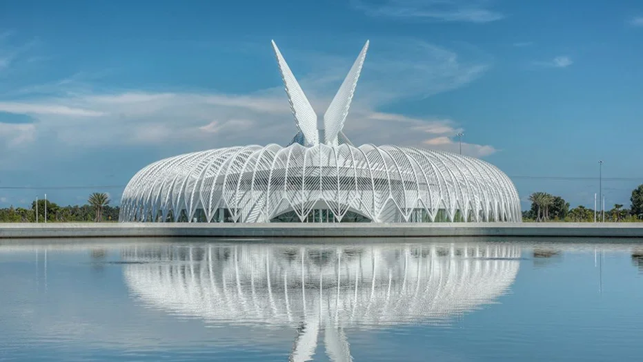 The Barnett Applied Research Center (ARC) at Florida Polytechnic University, a striking addition to the campus, showcases cutting-edge research and technology. Image: Courtesy of HOK