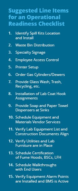 The list of priorities is different for every lab space, but there are a few key details that are essential to address to achieve operational readiness. Let’s take a look at some of the top concerns that materialize when building a new lab or renovating an existing one. Consider this a checklist for laboratory moves going forward: