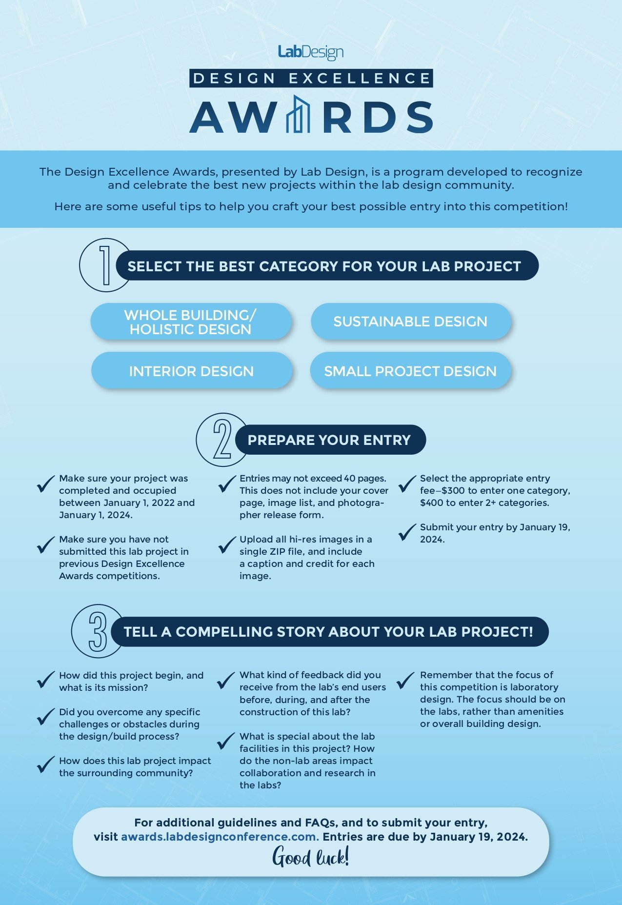 The winners will be honored at the Lab Design Conference in Phoenix, Arizona on May 20, 2024.