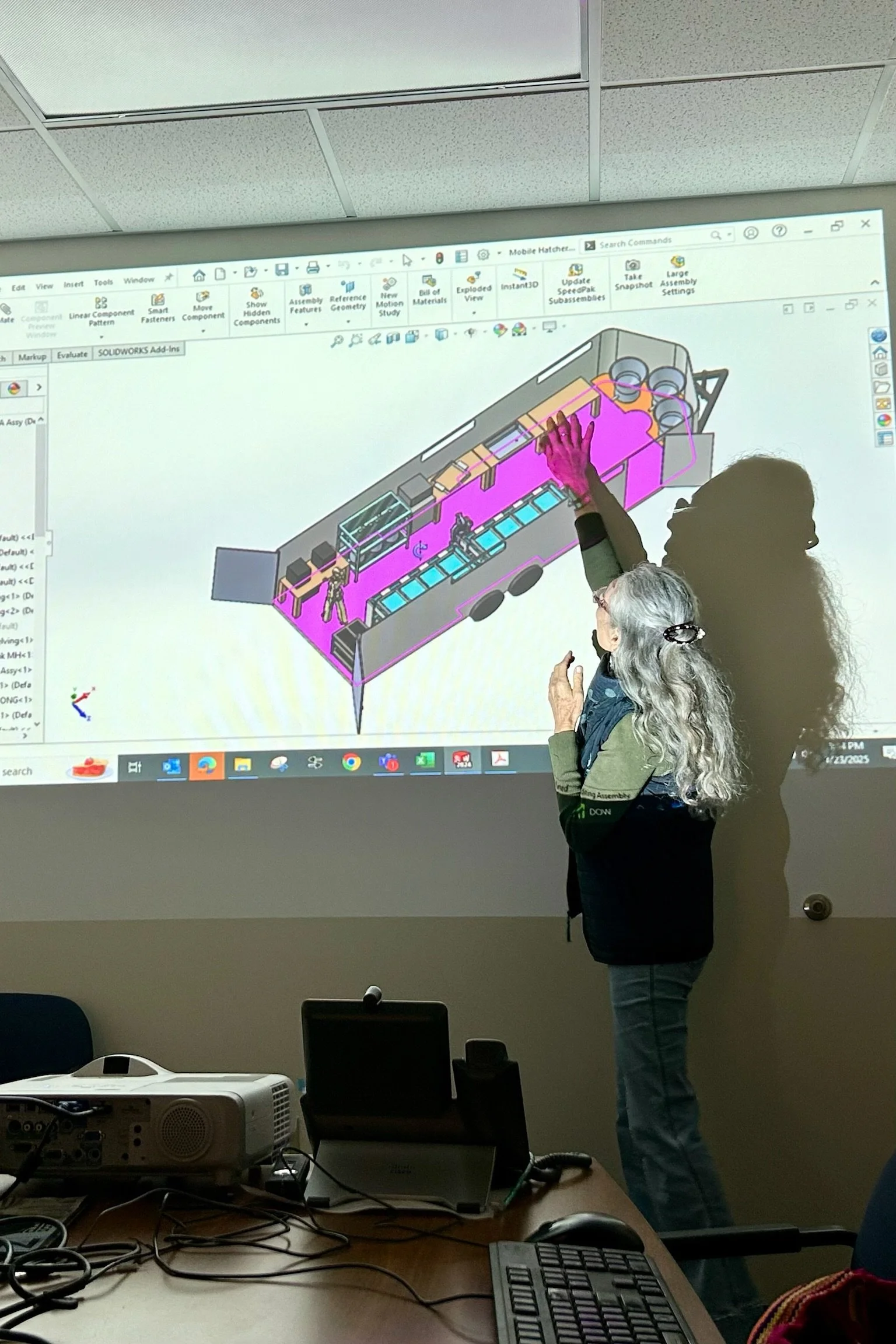 Dr. Megan Davis showing the layout of the Cape Eleuthera Mobile Lab. Image credit: Robinson Bazurto