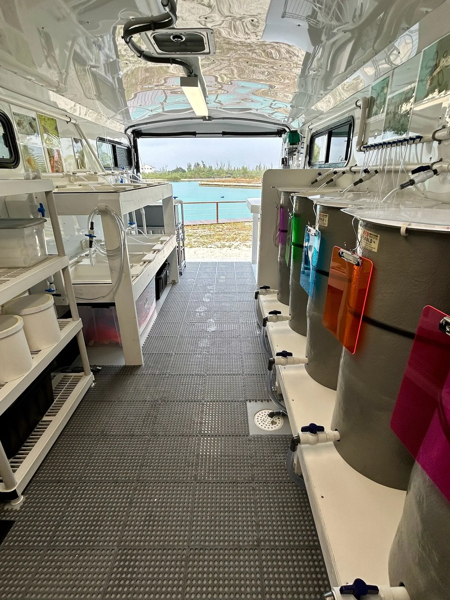 Key design upgrades, such as replacing a ramp with wider barn doors and integrating a plug-and-play seawater plumbing system, reflect lessons learned from earlier mobile lab deployments. A standout feature is the lab’s mobility: it can be relocated in the event of a hurricane—essential for island-based operations.