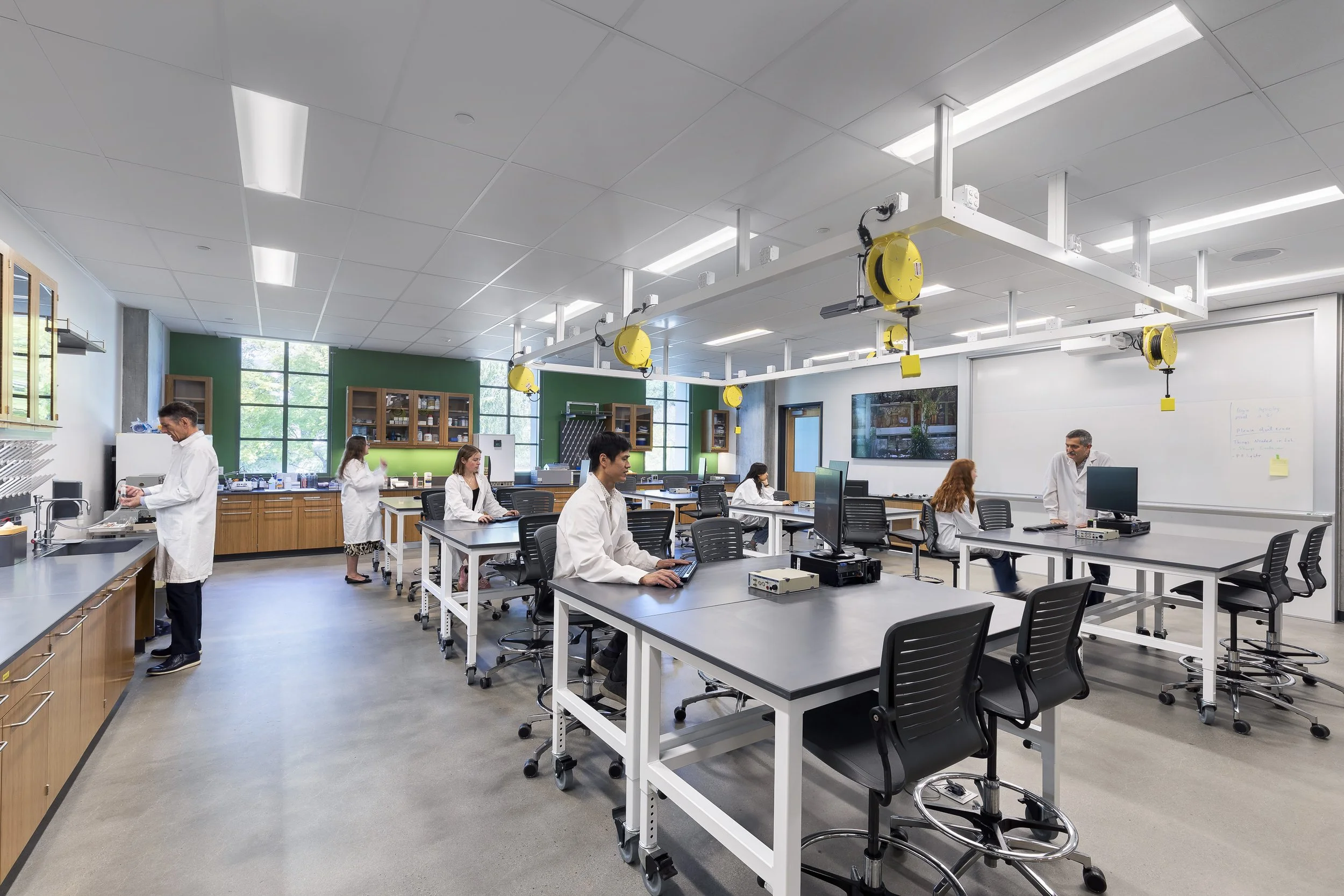 “Shared fume hoods, right-sized HVAC zones, and heat recovery loops helped reduce energy intensity while maintaining safety and performance,” says John Beck, LEED AP BD+C, senior associate, architect at CJ+C.