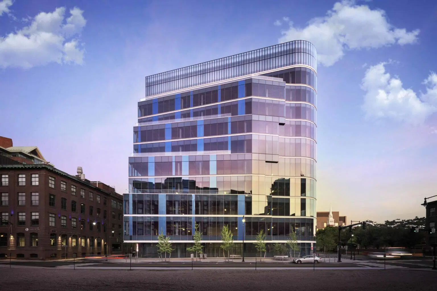 The buildings were constructed using an “up-down” technique—building upward before excavating the six below-grade parking levels—enabling earlier occupancy for tenants. Adjacent to the Charles River, the site required advanced slurry wall construction methods to support excavation.