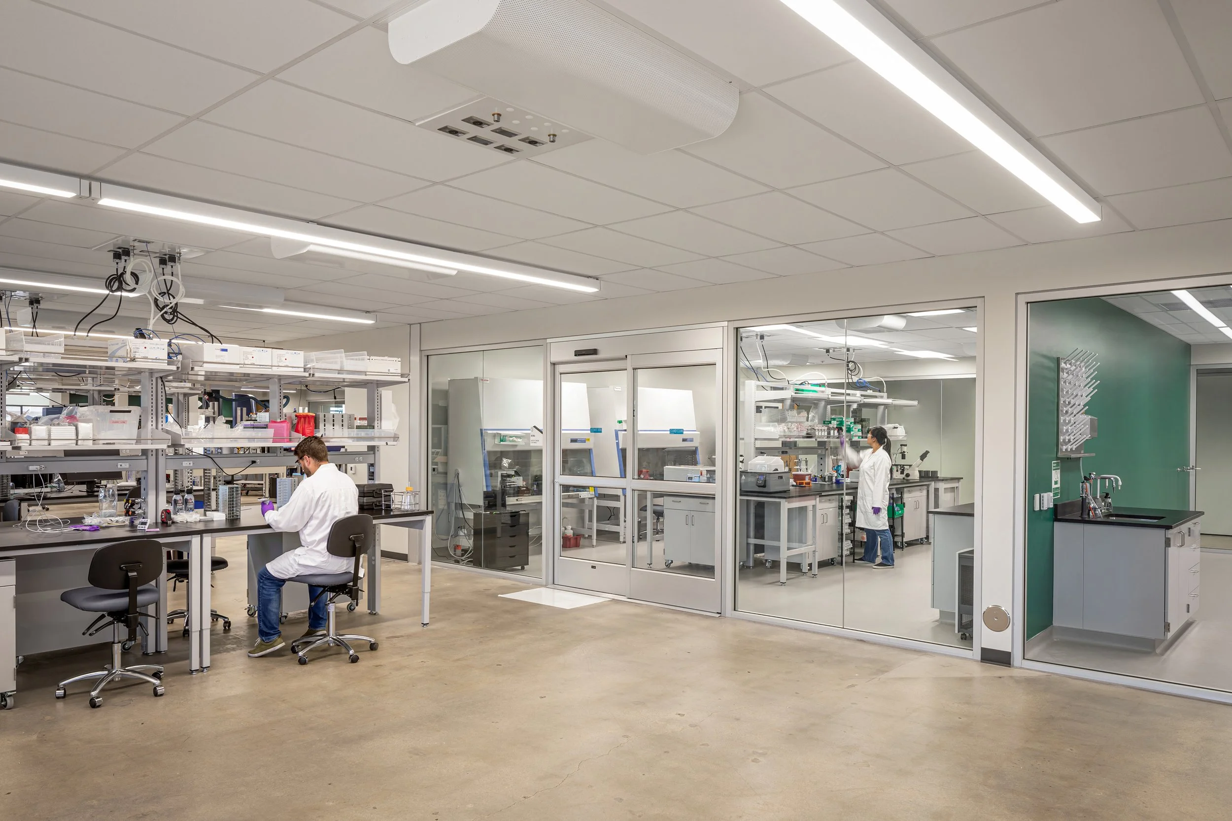 Lab space featuring separate, isolated rooms. Image: Caleb Tkach, AIAP