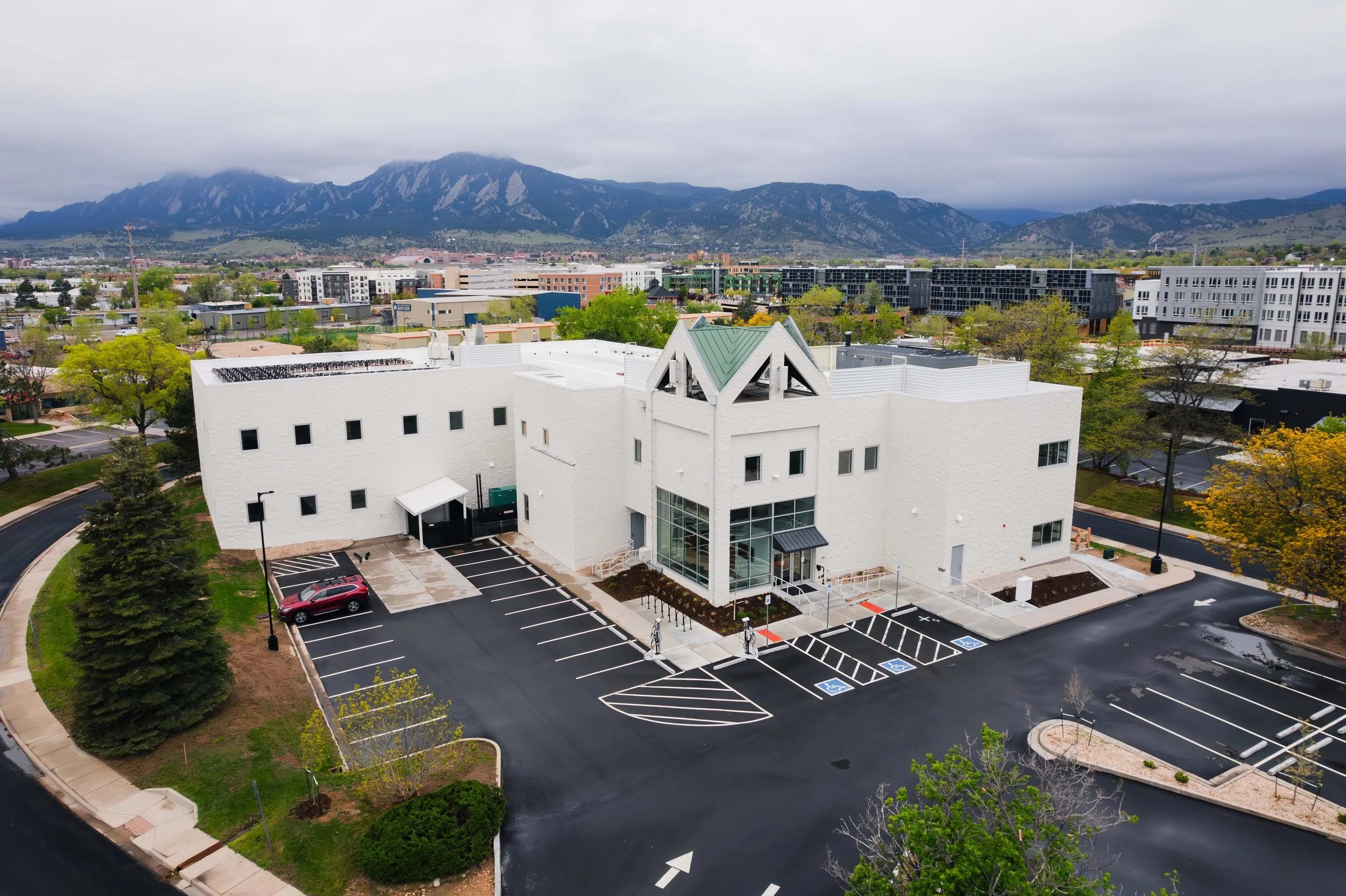 A: Our labs have the best view of the Flatirons—we’ve taken full advantage of that amazing and unique Boulder feature! We were also struck by the presence of the site, which is an island in the tear drop of the Wilderness Place cul-de-sac, making it the most prominently featured building on the street.
