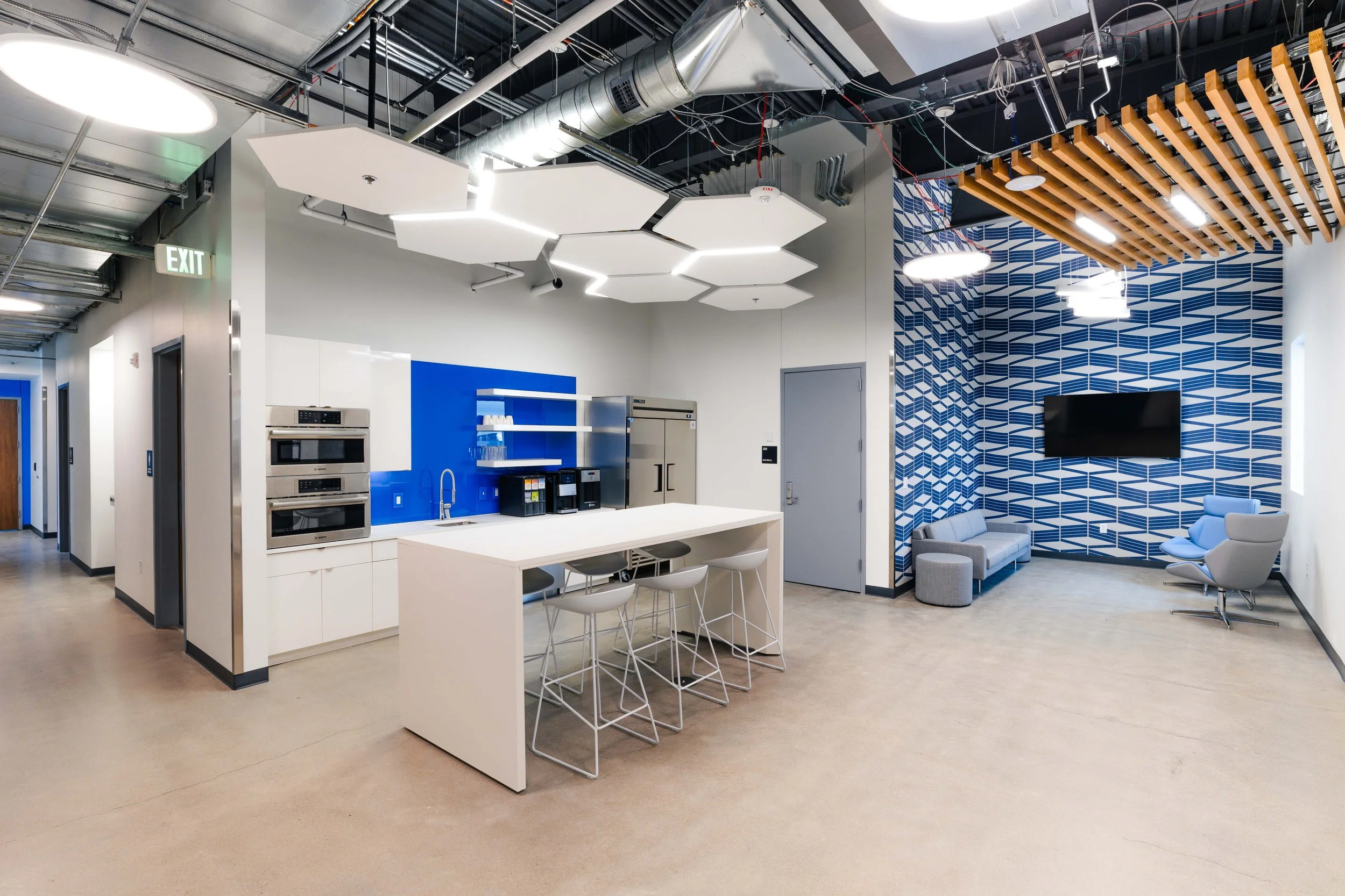 All non-lab areas are well appointed with common amenities to support co-working environments.