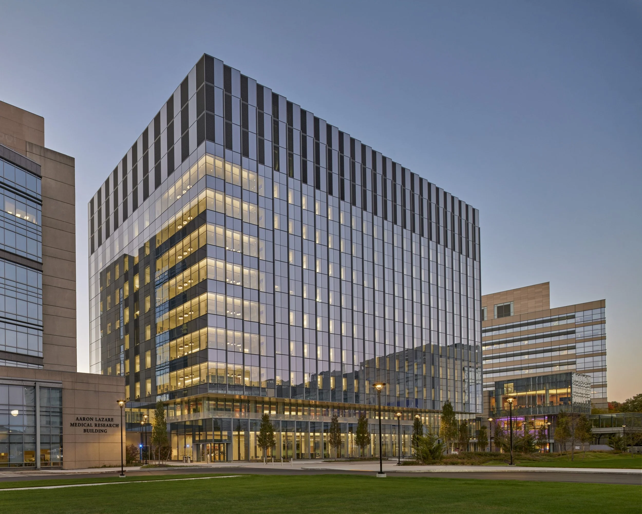 The Paul J. DiMare Center at the University of Massachusetts Chan Medical School represents a new benchmark in laboratory design—one that balances sustainability, flexibility, and collaboration while supporting highly specialized biomedical research. The nine-story, 354,000-sf facility was designed by ZGF Architects, with Architectural Resources Cambridge as architect of record and Shawmut Design and Construction serving as general contractor. The $300 million building accommodates more than 70 principal investigators and their teams, while pursuing aggressive energy performance targets and creating a highly adaptable research environment.